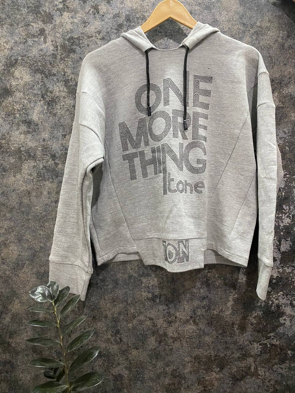 _ طراحی هوشمند و جذاب: پرینت «One More Thing» با ستارههای کوچک و جذاب (مثل الماسهای ریز!) و لوگوی زیرِ کمر، به این هودی یک حس مدرن و کمی «پاپ» میده بدون اینکه بیش از حد پررنگ باشه.
