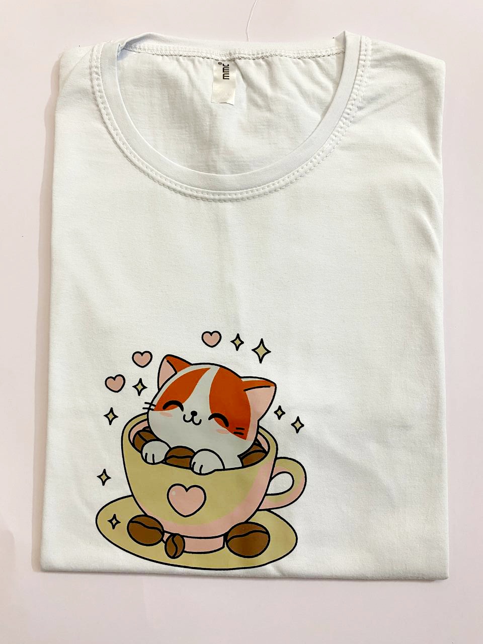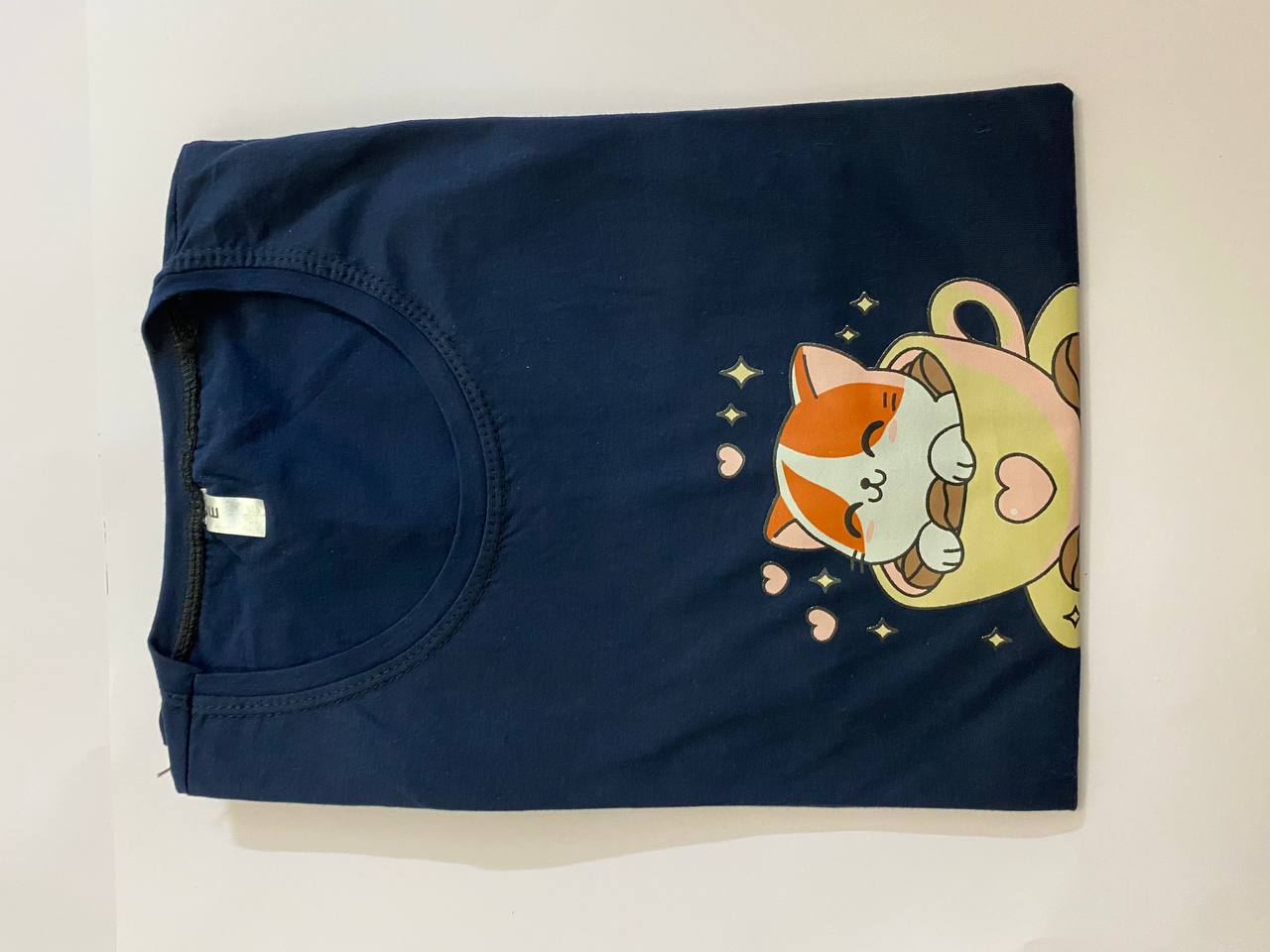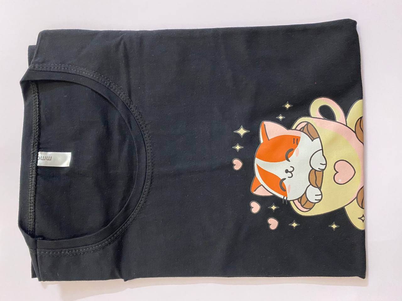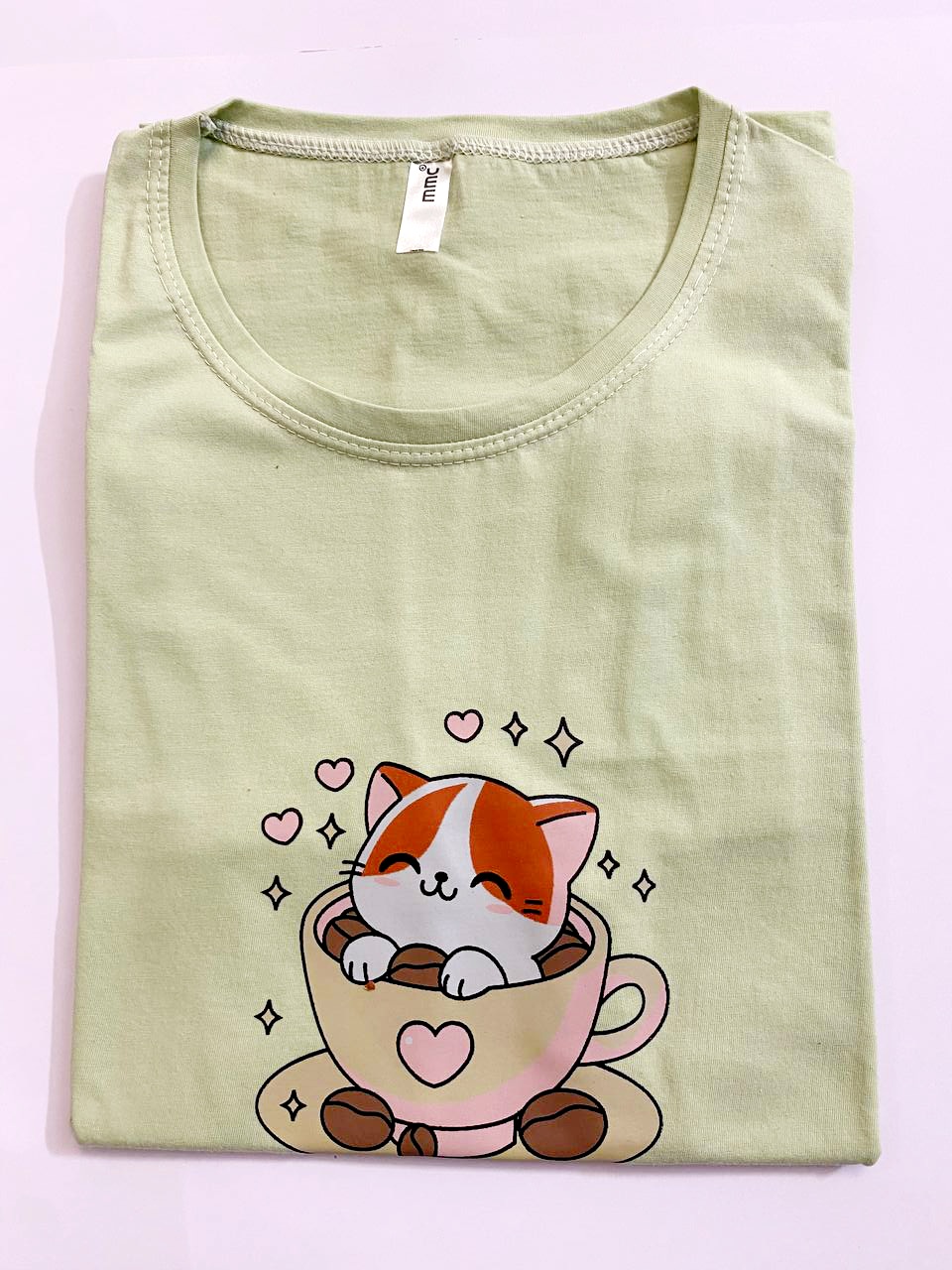 تیشرت زنانه _دخترانه طرح گربه ای جنس نخ پنبه